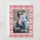 Chic simple Carte de voeux de saison de vacances avec une police de script joli et moderne sur une tendance contemporaine de saison de vacances classique rouge et noir Fair Isle motif motif. Avec l'option de customiser ou de personnaliser avec une photo de votre choix sur le devant, et un message personnel à l'intérieur. Design vintage, mais moderne et classe pour les amateurs de thèmes hiver et décembre. Disponible sur une variété d'artisanat moderne et de produits de bureau. Comme l'emballage et le papier de mouchoir, étiquettes cadeaux, sacs et ballotins, autocollants, rubans, papeterie et enveloppes.