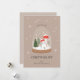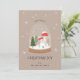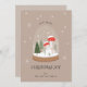 Art de la ligne festive de boule de neige avec chute de neige, arbres et champignons. Police festive "Joie de Noël" et un message personnalisé sur le dos.