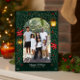 Envoyez vos vœux chaleureux pour cette période des fêtes avec une belle carte de Noël de famille présentant un design vert et or festif, des lanternes lumineuses et des détails de houx joyeux. Parfait pour partager l'amour, la joie et l'esprit de Noël avec les amis et la famille. Personnalisez avec votre propre photo et message pour un souvenir sincère.