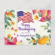 Un design de feuille d'automne lumineuse avec drapeau américain et citrouilles prêt à vous permettre d'envoyer vos vœux de Thanksgiving à vos amis et proches.