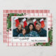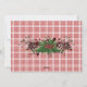 Unique, classique, tendance, jolie et décorative Carte de vacances. Joy Holidays salue le texte et l'espace pour customiser ou personnaliser avec une photo, nom de famille (ou noms individuels) et message de votre choix. encadré de baies rouges de vin de Bourgogne et de bouquets de fleurs vert foncé sur un élégant cottage de campagne français noir et blanc en vichy vérifiez l'arrière - plan.