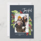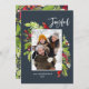 Joyeuses fêtes carte de Noël photo bleu marine. Beaux feuillages peints à l'aquarelle et texte moderne calligraphié. Fait partie d'une collection.