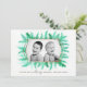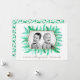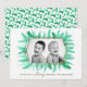 Feuillage vert de chêne vert en aquarelle hivernal modèle de carte photo de Noël. Personnalisez avec votre nom de famille et votre photo. Œuvre d'art aquarelle originale de Sarah Trett.