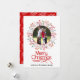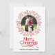 Célébrez la saison festive avec ce magnifique carte photo rouge de Noël Joyeux. Ce design élégant présente votre image à l'intérieur d'un cadre circulaire orné de baies et de feuilles. Vous pouvez également ajouter votre propre message pour le personnaliser. Le dos de la carte est d'un arrière - plan rouge avec un motif du texte stylisé "Joyeux Noël" en blanc.