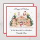 Cette carte de Noël est adaptée aux jumelles ou aux célibataires lors de leur premier ou deuxième Noël. Le design comprend des flocons de neige aquarelle, des arbres de Noël, une maison en pain d'épice avec Père Noël et rennes sur le toit, des personnages en pain d'épice pour filles et un bonhomme de neige.