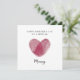 Celebrate the love between a mother and child with this elegant fingerprint heart Mother’s Day card. Featuring a beautiful red fingerprint heart symbolizing a unique and unbreakable bond, this minimalist and modern greeting card is perfect for telling your mummy how special she is. Ideal from daughter or son, this heartfelt design makes a meaningful keepsake she will cherish forever. A thoughtful and stylish card to make Mother’s Day extra special. 💖