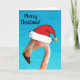 Cartes Pour Fêtes Annuelles Flamant rose rose en caricature rouge Noël chapeau
