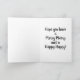 Photo d'un flamant rose contre un arrière - plan bleu tropical sur une carte de vacances. Avant : Joyeux Noël ! A l'intérieur : J'espère que vous avez un Joyeux Joyeux et un Joyeux Joyeux !