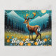 Un cerf mignon se tient sur une prairie fleurie avec des montagnes et des pins arrière - plans la nuit. Personnalisez-le en changeant l'image et le nom.