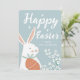 Carte de vacances Pâques Plat Blanc Fleurs de lapin mignonne