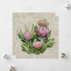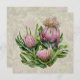 Il s'agit d'une aquarelle colorée exotique rose protéa fleurs avec des tiges vertes et feuilles.
