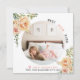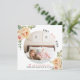 Fleurs de pêche de corail Best Mom Ever Mère's Day carré carte photo. Un joli design qui présente une photo, des fleurs de pêche sur les coins supérieur gauche et inférieur droit, le texte "MEILLEUR MOM JAMAIS" en noir et corail et un coeur rose corail. L'arrière comprend un motif à pois en corail et blanc. Photographie © Storytree Studios, Stanford, CA