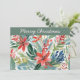 Une très jolie carte de Noël avec une illustration colorée de fleurs de poinsettia rouges, dans un style aquarelle. Pleine de charme botanique, cette carte de vacances est idéale pour envoyer des vœux de fête avec une touche florale.