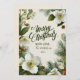 Apportez une élégance intemporelle à vos salutations de vacances avec ce design de Noël vert et blanc. Doté de fleurs d'hiver, de branches de pins à feuillage persistant et d'accents naturels doux, il saisit parfaitement le charme paisible de la saison. Le mélange de fleurs délicates et de verdure rustique en fait un choix raffiné mais cosy pour répandre la joie festive.