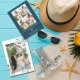 Envoyez cette belle carte de vacances à vos amis et à votre famille avec un cadre de fleurs hivernales avec une photo, un texte "joyeux", le nom de la famille et l'année, et ajoutez quatre photos avec votre message personnel au verso.