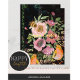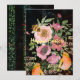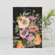 Trouvez cette jolie carte de vacances orientale avec des roses roses et des fleurs sur un fond noir avec des nuances de rose et de vert.