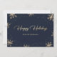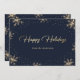 Cartes de vacances modernes élégantes bleues et dorées représentant des flocons de neige et de la neige sur un fond bleu foncé. Un beau titre écrit à la main avec un effet de dorure à l'or au centre. Personnalisez facilement ces cartes de vacances aux flocons de neige bleus et dorés avec le nom de votre famille et votre message. Les demandes personnalisées sont les bienvenues.
