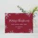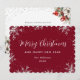 Carte de vacances rouge élégante avec un cadre charmant de neige qui tombe et de flocons de neige sur fond rouge au recto et une peinture aquarelle de poinsettia, branches de conifères, houx et baies rouges au verso. Une police de caractères élégante est utilisée pour donner un aspect plus festif à cette carte de vœux. Personnalisez facilement cette carte de vacances non photo en ligne.