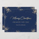 Cartes de Noël bleu et or brillant avec un type de police moderne et avec des flocons de neige et chute de neige sur un arrière - plan bleu. Personnalisez facilement ces cartes de Noël bleu et or avec votre nom de famille et un message.