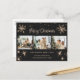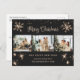 Photographie noire Carte postale Joyeux Noël et Joyeux Nouvel An avec un collage photo avec étoiles, flocons de neige et un magnifique message de voeux de vacances écrit à la main dans une police de script festif. Personnalisez facilement cette carte postale noire avec vos photos, votre nom de famille et votre texte. L'arrière - plan peut être customisé à n'importe quelle couleur.