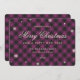 Carte de vacances en plaid violet ornée d'un arrière - plan en plaid de buffle violet et noir orné de flocons de neige et d'étoiles.