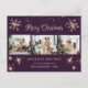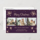 Photo violette Carte postale Joyeux Noël et Joyeux Nouvel An avec un collage photo avec étoiles, flocons de neige et une belle lettre de voeux de vacances dans une police de script festif. Personnalisez facilement cette carte postale de vacances violette avec vos photos, nom de famille et texte. L'arrière - plan peut être customisé à n'importe quelle couleur.