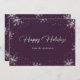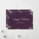 Cartes de vacances violettes et argentées modernes élégantes présentant des flocons de neige et de la neige sur un fond violet foncé. Un beau titre écrit à la main avec un effet de feuille d'argent au centre. Personnalisez facilement ces cartes de vacances avec flocons de neige violets et argentés avec le nom de votre famille et votre message. Les demandes personnalisées sont les bienvenues.