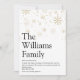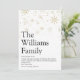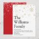 Partagez la définition de votre famille de ce que signifie pour vous la période des fêtes de Noël avec ces cartes de vœux modernes élégantes et amusantes. Caractéristiques typographie moderne et flocons de neige dorés élégants. Le verso de la carte présente des flocons de neige blancs assortis sur fond rouge que vous pouvez personnaliser pour correspondre à votre thème de vacances. Conçu par Thisisnotme©