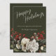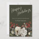 Moderne "Joyeuses Fêtes" non confessionnel Noël / accueil saisonnier, avec "merci" aux employés. Florales élégantes avec typographie de script sur un arrière - plan vert très profond. Double face, avec "voeux les plus chauds" et "Bonne année !" sur le dos. Customisez en ajoutant votre propre nom d'entreprise et vos sentiments.
