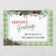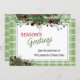Unique, classique, tendance, jolie et décorative carte de vacances d'entreprise. Joy Holidays accueillant texte et espace pour customiser ou personnaliser avec un message de votre choix à l'arrière de la carte. encadré de baies rouges de vin de Bourgogne et de bouquets de feuillage vert foncé sur un écossais écossais vert et blanc plaid en vichy arrière - plan motif.