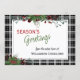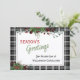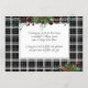 Unique, classique, tendance, jolie et décorative carte de vacances d'entreprise. Joy Holidays accueillant texte et espace pour customiser ou personnaliser avec un message de votre choix à l'arrière de la carte. encadré de baies rouges de vin de Bourgogne et de bouquets de feuillage vert foncé sur un élégant arrière - plan motif en tartan blanc et noir.