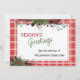 Unique, classique, tendance, jolie et décorative carte de vacances d'entreprise. Joy Holidays accueillant texte et espace pour customiser ou personnaliser avec un message de votre choix à l'arrière de la carte. encadré de baies rouges de vin de Bourgogne et de bouquets de feuillage vert foncé sur un écossais rouge et blanc plaid en vichy arrière - plan motif.