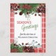 Unique, classique, tendance, jolie et décorative carte de vacances d'entreprise. Joy Holidays accueillant texte et espace pour customiser ou personnaliser avec un message de votre choix à l'arrière de la carte. encadré de baies rouges de vin de Bourgogne et de bouquets de feuillage vert foncé sur un écossais rouge et blanc plaid en vichy arrière - plan motif.