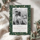 Cartes de Noël vintage Classic à deux faces avec motif de feuillage d'hiver à la sauge foncée avec photo de famille personnalisée et messages de vacances.