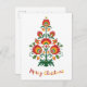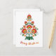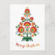 Carte de Noël avec sapin de Noël avec fleurs folkloriques et feuille, inspirée du folklore de Lowicz avec texte personnalisable et champ d'adresse. Arrière - plan blanc Joyeux Noël !
