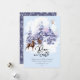 La conception de carte de vacances de forêt de aquarelle de fêtes thématiques comprend un ensemble de forêt de aquarelle peinte à la main sur un fond d'aquarelle enneigé et est accentué de cerfs de aquarelle et d'un hibou d'hiver. "Paix sur Terre" est une typographie moderne écrite à la main qui est associée à du texte traditionnel. Le verso est un motif de neige qui tombe et de flocons de neige. #Noël #Fêtes #CartesDeFêtes