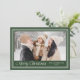 Envoyez des salutations chaleureuses avec ce carte photo avec un arrière - plan vert de forêt profonde encadré par une double bordure crème douce. "Joyeux Noël" apparaît en lettres crème élégantes sous votre photo de famille, avec votre nom de famille et l'année affichée ci-dessous. Le dos comprend de l'espace pour votre message personnalisé, créant une façon confortable et sophistiquée de partager la joie de Noël.