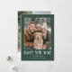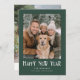 A timeless New Year photo card featuring a rich green border and a clean double-line frame that beautifully highlights your favorite family photo. The bold “Happy New Year” greeting adds a festive, vintage-inspired touch, while the personalized name line brings a warm and welcoming finish. Thoughtfully designed with a bright, classic layout, this card makes it easy to share joyful wishes and celebrate the year ahead. The back includes space for an additional photo to showcase even more memories.