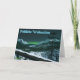 La nuit est tombée dans l'extrême nord et il y a un indice des aurores boréales au-delà des montagnes à l'horizon. Le clair de lune reflète le paysage enneigé. Le texte allemand "Frohliche Weihnachten" apparaît en bleu et blanc éclatant.