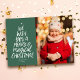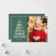 Nous vous souhaitons un joyeux Noël magique ! Ce carte photo de vacances propose un traitement à la main tendance sur un arrière - plan vert festif. Cette carte de Noël a aussi une photo sur le devant avec deux photos sur le dos vert coordonnant qui a aussi un point et un motif étoilé correspondant. Ce design amusant et festif de cartes de vacances est parfait comme une carte de Noël familiale, une carte de vacances pour couple et plus. Retrouvez des photos de vacances, des souvenirs favoris ou une séance photo en famille sur ce design de trois photos. Trouvez plus de couleurs et de styles correspondants dans la collection de Lea Delaveris Design. Aussi disponible en téléchargement de carte de vacances numérique.
