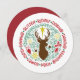 Fun Red Script Père Noël Reindeer Nom Noël Carte de vacances. Combien de rennes Père Noël a-t-il et quels sont leurs noms ? Envoyez des voeux et des salutations chaleureux à vos proches avec cette carte de vacances en forme de cercle mignonne et amusante avec tous les rennes volants magiques Père Noël avec des décorations colorées ornement de Noël en cercle rond design. Reverse pour révéler un message de salutation personnalisable et des noms dans beau arrière - plan rouge marron. Souhaitez-vous à tous des Vacances Joyeuses et un Nouvel An Extraordinaire !