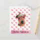 Funny Airedale Be My Valentine Dog Valentine's Day Carte postale | Regardez notre jolie carte de vacances pour chien de la Saint Valentin hilarante! Cette adorable carte présente un chien mignon avec un casquette de fête, de grandes lunettes rouges rigolotes, des pattes blanches et des coeurs roses. Sur le devant se trouve le dicton "Sois ma Saint Valentin". Que vous l'envoyiez en cadeau à un ami ou un membre de la famille qui aime ses chiens, cette carte fait un cadeau mignon pour tous les amoureux de les chiens!