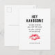 Envoyez un baiser et montrez-lui votre amour avec ce Drôle petit ami Valentine's Day Poem Red Kiss Name Holiday Postcard. Il est conçu avec un poème amusant sur le devant "hey beau, tu es si beau mais pas encore le mien donc tu seras ma valentine" en typographie noire et un grand baiser rouge. Personnalisé avec votre nom de signature, texte personnalisé ou vous pouvez supprimer. Cliquez sur l'option "personnaliser" et suivez l'invite.