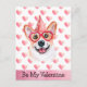 Funny Corgi Be My Valentine Dog Valentine's Day Carte postale | Regardez notre jolie carte de vacances pour chien de la Saint Valentin hilarante! Cette adorable carte présente un chien mignon avec un casquette de fête, de grandes lunettes rouges rigolotes, des pattes blanches et des coeurs roses. Sur le devant se trouve le dicton "Sois ma Saint Valentin". Que vous l'envoyiez en cadeau à un ami ou un membre de la famille qui aime ses chiens, cette carte fait un cadeau mignon pour tous les amoureux de les chiens!