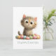 Celebrate Easter with a smile using this funny flat Easter greeting card featuring a wide-eyed kitten surrounded by colorful Easter eggs.