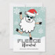 Diffusez un peu de joie pour les vacances avec cette carte de Noël amusante avec un mouton qui portait un Père Noël dansait dans la neige, et une pièce humoristique sur les mots, remplaçant le salut espagnol 'Feliz Navidad' par 'FLEECE Navidad'. Image originale KL Stock