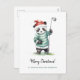 Drôle Panda jouant au golf carte postale de Noël. Dessin aquarelle d'un mignon ours blanc panda en chapeau de Santa jouant au golf. Texte personnalisé.