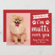 For the dog lover at Valentine's Day. This Valentine's Day card from your dog to you has a super cute and funny pun 'i'm mutts over you.' This card can be personalized with the inclusion of your own dog's photo and you can also include your own choice of text at the bottom of the design. We love that your dog's name appears but you can include any text. This design is super cute and a great way of celebrating your bond with your pet dog this Valentine's Day.