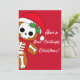 Un homme en pain d'épice squelette sur fond rouge. Envoyez un sourire avec cette carte de vacances mignonne.