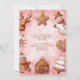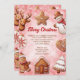 Célébrez en style avec cette jolie carte de vacances en pain d'épices. Parfait pour décorer vos fêtes de Noël ou de vacances. Des illustrations d'aquarelle gaie représentant des personnages de biscuits en pain d'épice (un arbre de Noël, un homme avec casquette, bonhomme de neige, étoile, coeur, rennes, maison et boule de Noël) sur un arrière - plan rouge et blanc avec des flocons de neige. Playful et charmant, c'est la façon parfaite de donner le ton pour une fête amusante et de souhaiter à vos proches un Joyeux Noël.